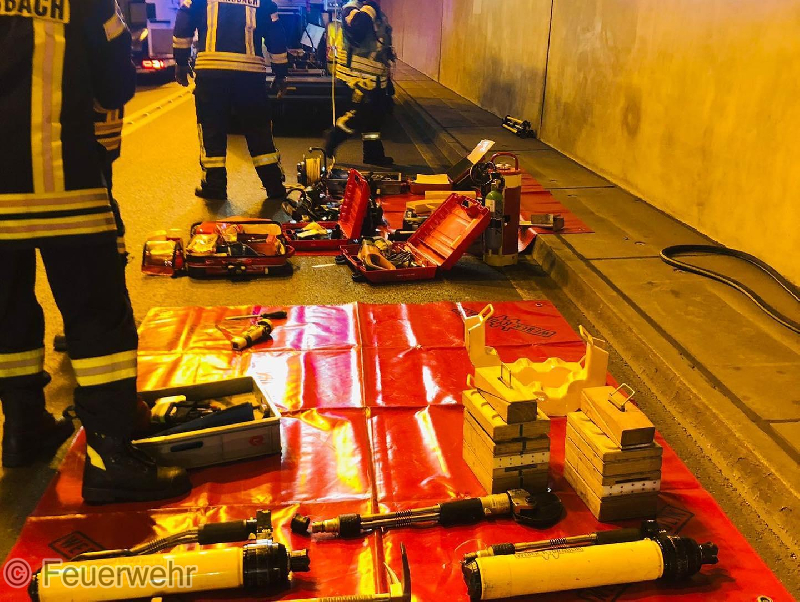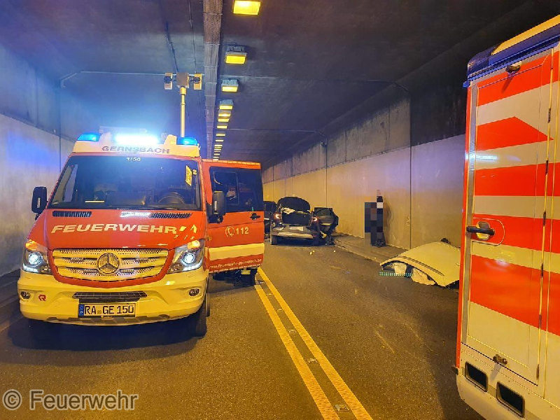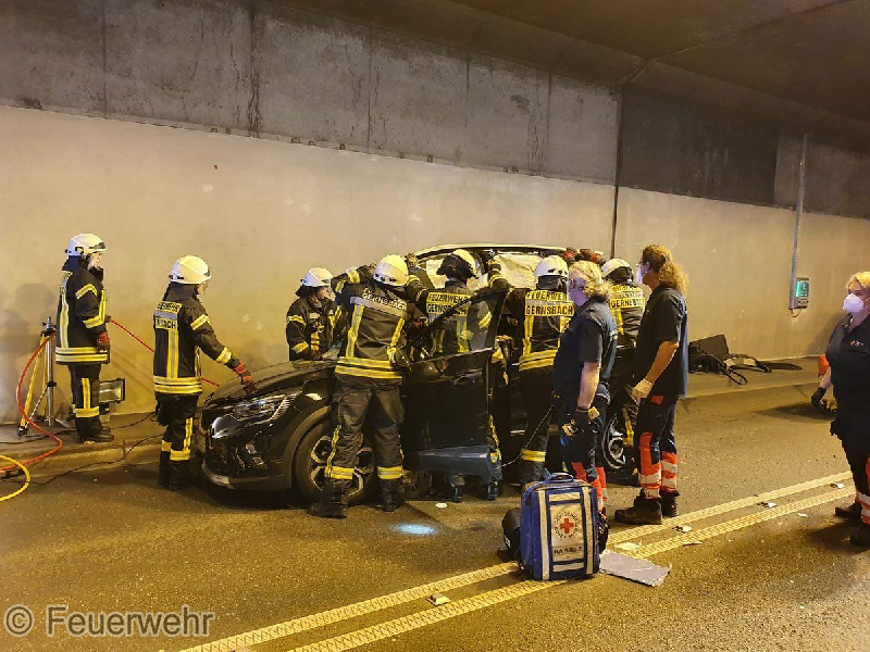 Am frühen Morgen wurden wir gegen 02:13 Uhr zu einem Verkehrsunfall in den Tunnel Gernsbach gerufen. Ein PKW prallte mehrmals alleinbeteiligt an die Tunnelbegrenzung und kam dann auf der rechten Fahrspur zum Stehen. Mit der Säbelsäge und hydraulischem Rettungsgerät befreiten wir den Fahrer aus dem Fahrzeug. Aufgrund seiner Verletzungen wurde er vom Rettungsdienst während den gesamten Rettungmaßnahmen versorgt und anschließend in eine Klinik gebracht.