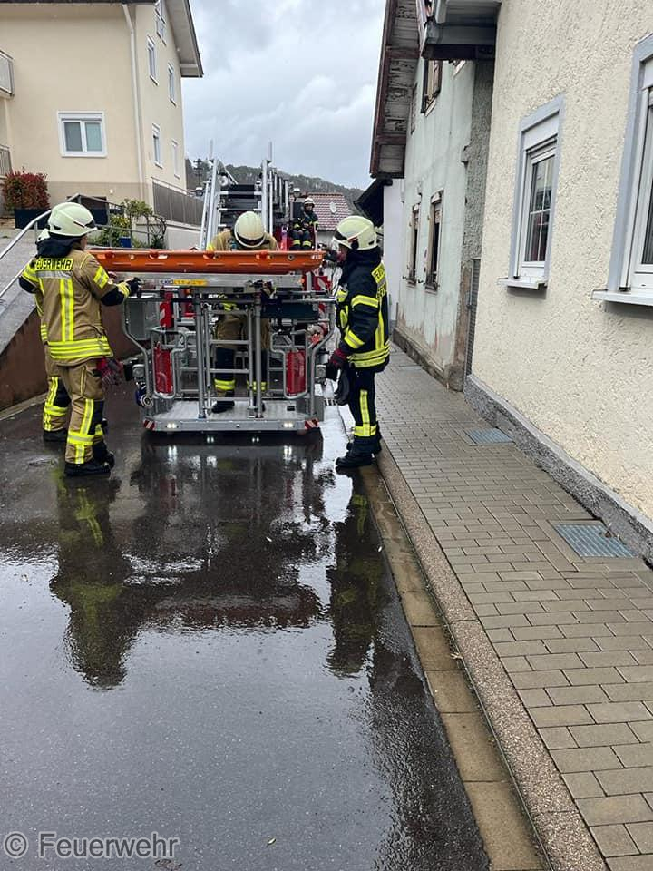 Zur Unterstützung des Rettungsdienstes, wurden wir heute gegen Mittag nach Staufenberg alarmiert. Aufgrund enger Platzverhältnisse, musste eine Person aus dem 1. Obergeschoss über die Drehleiter gerettet werden.