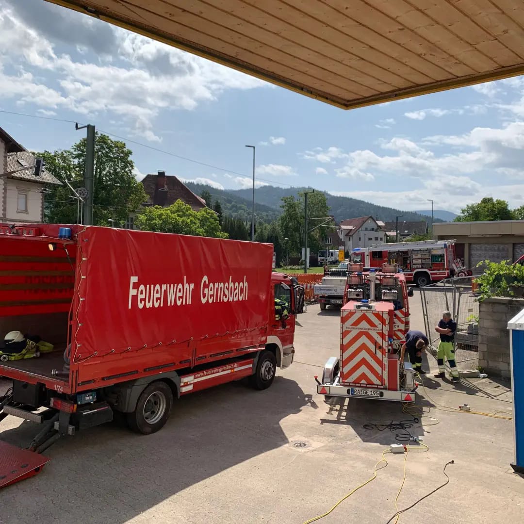 Am gestrigen Montag beschäftigte ein mehrstündiger Hilfeleistungseinsatz unsere Einsatzkräfte. Im "alten Postgebäude" stand der komplette Keller 200-250qm ca. 1,20 m hoch unter Wasser. Mit mehreren Chiemseepumpen und Wassersaugern pumpten wir rund 300.000 Liter Wasser aus dem Keller. Über mehrere B- und A-Druckschläuche förderten wir die großen Wassermengen rund 4 Stunden nach draußen in die Kanalisation. Verantwortliche der Stadt machten sich vor Ort ein Bild über die Lage. Zur Unterstützung mit zusätzlichen A-Druckschläuchen und weiteren Pumpen wurde die BF Baden-Baden nachgefordert, die mit einem Wechselladerfahrzeug und dem Abrollbehälter Hochwasser an der Einsatzstelle waren. Vielen Dank für die wie immer gute Zusammenarbeit und Unterstützung. Die Stromversorgung für die eingesetzten Pumpen stellten wir über unser mobiles Notstromaggregat sicher. Während des laufenden Einsatzes wurden wir auf eine ältere Dame aufmerksam, die orientierungslos umher lief und Schürfwunden am Arm vorweiste. Wir betreuten die Person bis zum Eintreffen eines angeforderten RTW, der die Dame letztendlich weiter versorgte. Die Aufräumarbeiten nahmen nochmals rund eine Stunde in Anspruch.