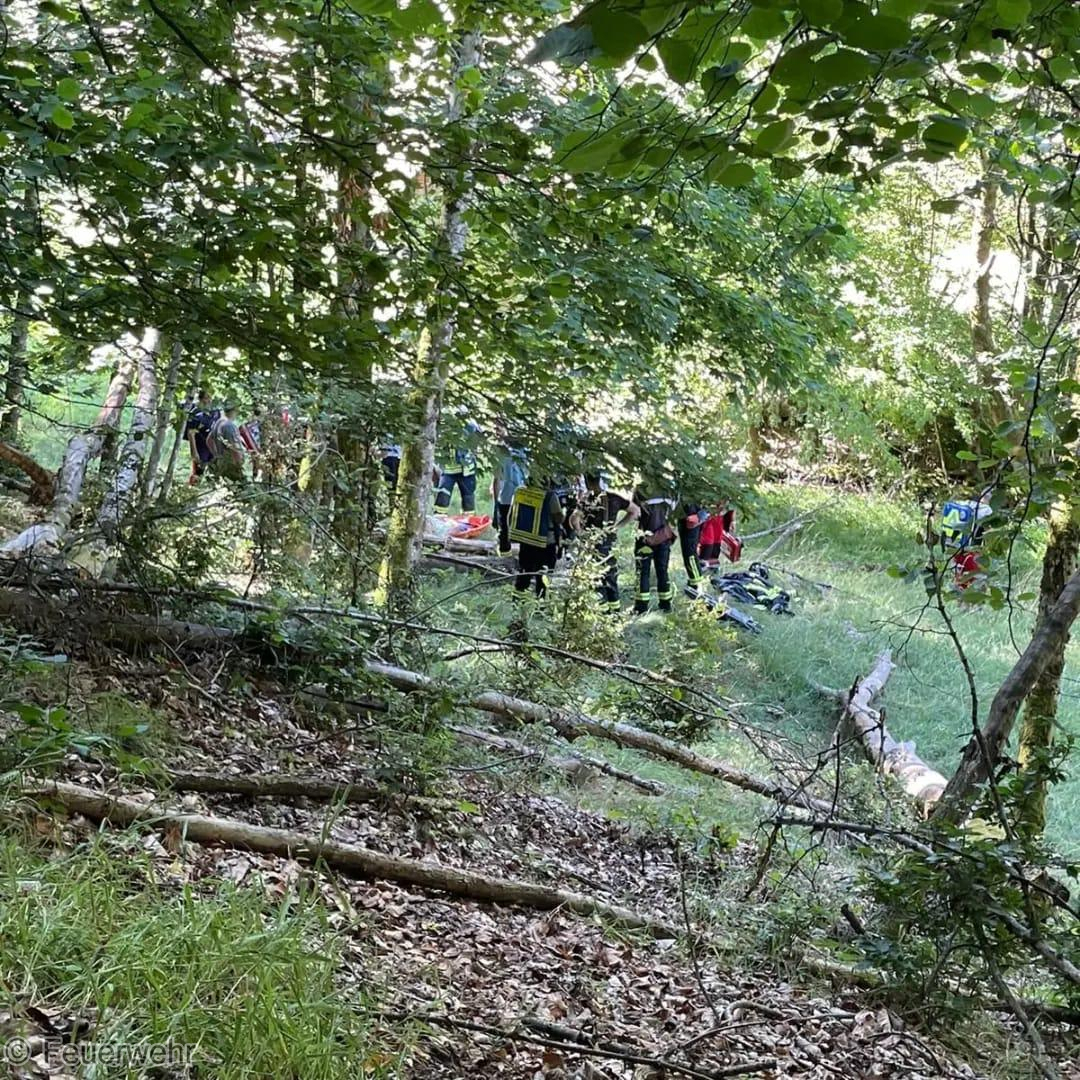 Heute morgen wurden wir zu einer Personenrettung in den Stadtteil Reichental alarmiert. Eine Person war in schwierigem Gelände gestürzt und hatte sich eine Unterschenkelfraktur zugezogen. Die verletzte Person lag rund 200m abseits der befestigten Straße wo der Rettungswagen bereitstand. Die Rettung wurde über die Schleifkorbtrage eingeleitet und die verletzte Person von der Unglücksstelle mit vereinten Kräften auf einen Waldweg getragen, wo sie von dort mit dem KDOW sitzend zum RTW gebracht werden konnte.