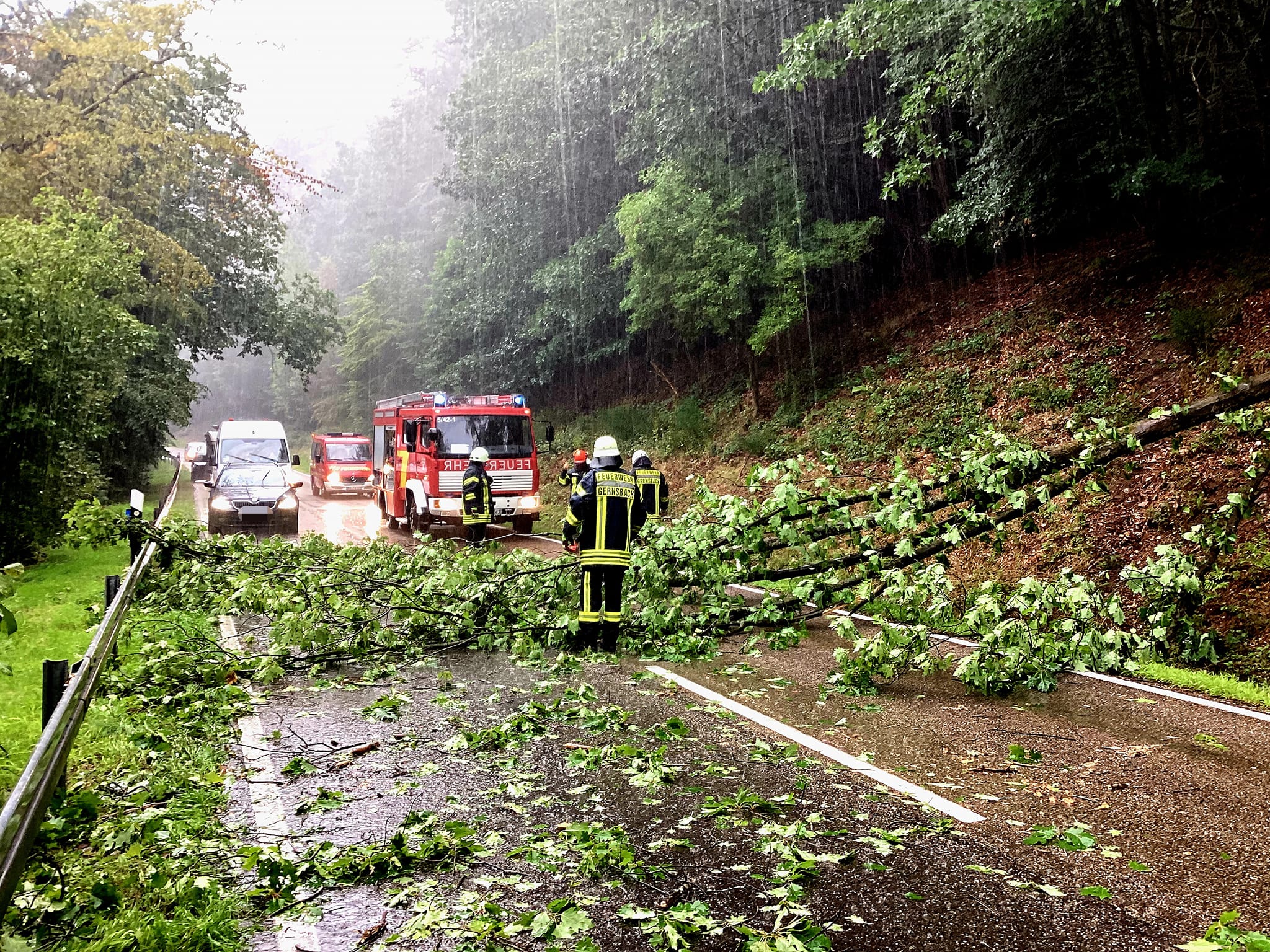 Zu einem umgestürzten Baum wurde die Abteilung Süd auf die L76 zwischen Hilpertsau und Reichental alarmiert. Vor Ort bestätigte sich die Meldung, ein Baum lag komplett über die Fahrbahn. Die Verunreinigung durch Laub und abgebrochenen Ästen, erstreckte sich über mehrere Quadratmeter. Durch uns wurde der Baum entfernt und die Straße gereinigt.