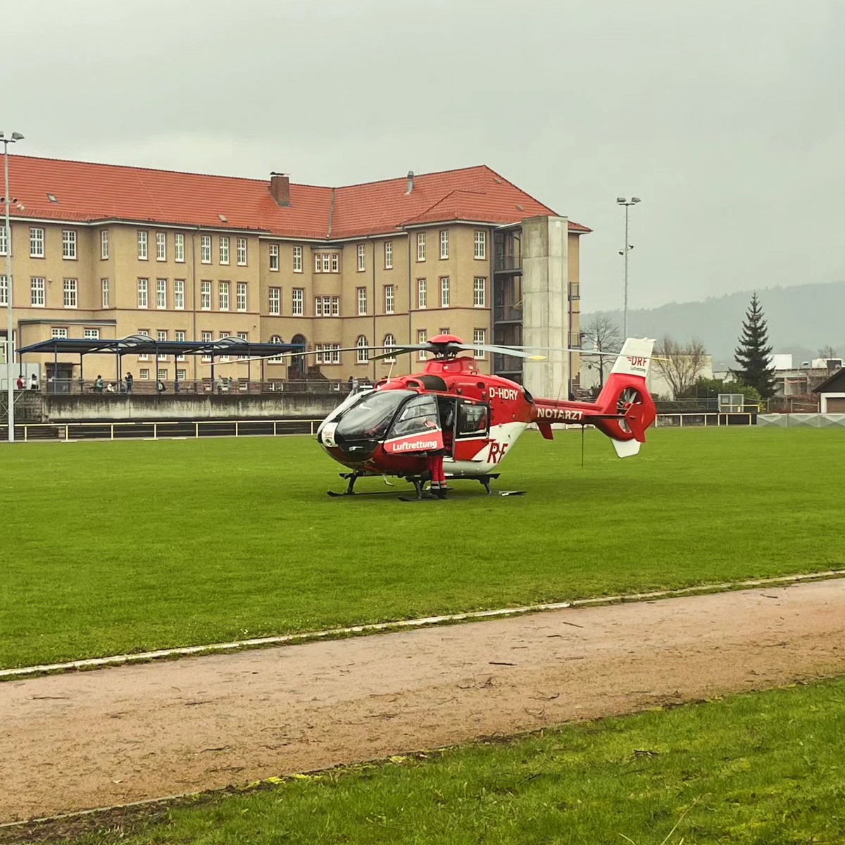 Heute alarmierte die Leitstelle den Kommandanten über Einzelruf, um die Besatzung mit Notarzt des Christoph 43 der @drf.luftrettung, mit dem Kommandowagen vom Stadion, zu einer Einsatzstelle im Stadtgebiet zu fahren. Im Anschluss wurde das Personal wieder zurück an den Landeplatz gebracht und das Stadion mit dem bei der Feuerwehr hinterlegten Schlüssel wieder verschlossen.