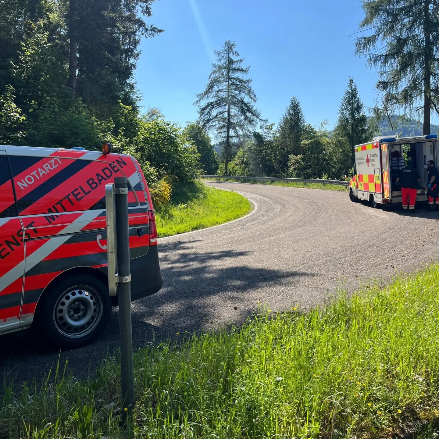 Der zweite Einsatz innerhalb 1,5 Stunden am heutigen Samstag erreichte uns um 16:33 Uhr zu einem verunglückten Motorradfahrer auf die K3701 zwischen Nachtigall und Schloss Gernsbach. Laut Meldung soll ein Motorradfahrer gestürzt sein und rund 10m unterhalb der Straße liegen. Nach Eintreffen der ersten Kräfte konnte schnell festgestellt werden, dass der Motorradfahrer bereits wieder oben an der Straße war und vom ebenfalls alarmierten @rettungsdienst_mittelbaden