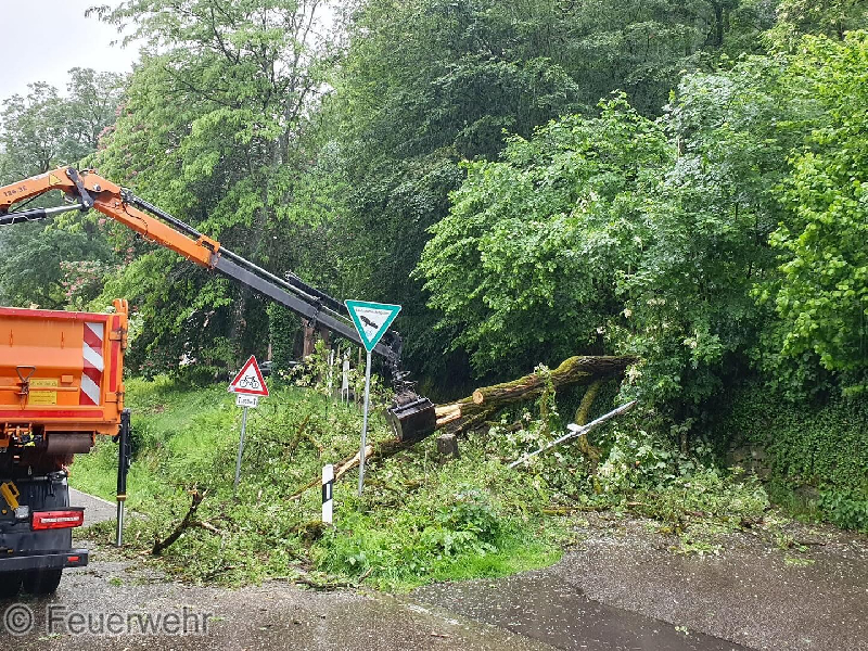 Der zweite Einsatz an diesem Vormittag führte uns in die Klingelstraße. Dort blockierte ein Baum die Fahrbahn. Gemeinsam mit dem Bauhof der Stadt Gernsbach wurde der Baum beseitigt.