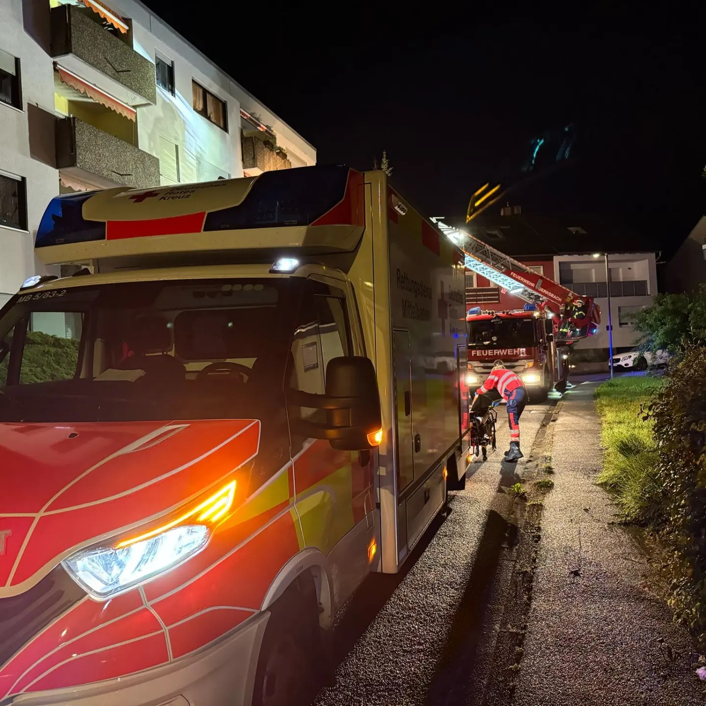 Zur Unterstützung für den @rettungsdienst_mittelbaden forderte die Leitstelle Mittelbaden uns gestern Abend in die Gernsbacher Nordstadt an. Vor Ort wurde die Drehleiter in Stellung gebracht und die Person anschließend nach unten zum bereitstehenden RTW transportiert.