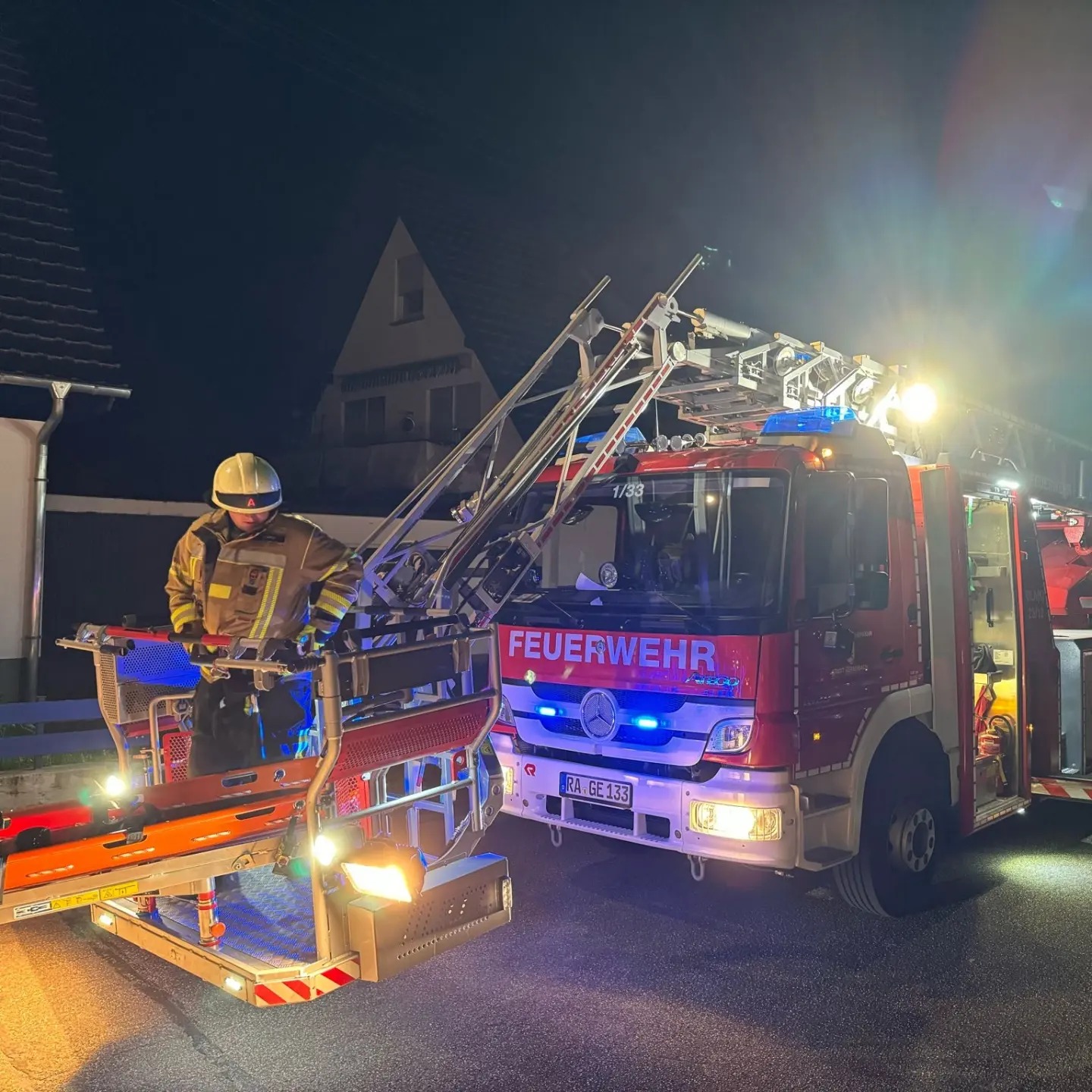 Unsere Drehleiter wurde heute Nacht zur Unterstützung des @rettungsdienst_mittelbaden in den Stadtteil Hilpertsau alarmiert. Vor Ort musste eine Person aufgrund enger Platzverhältnisse mittels Drehleiter und Schleifkorbtrage auf Straßenniveau gebracht werden.