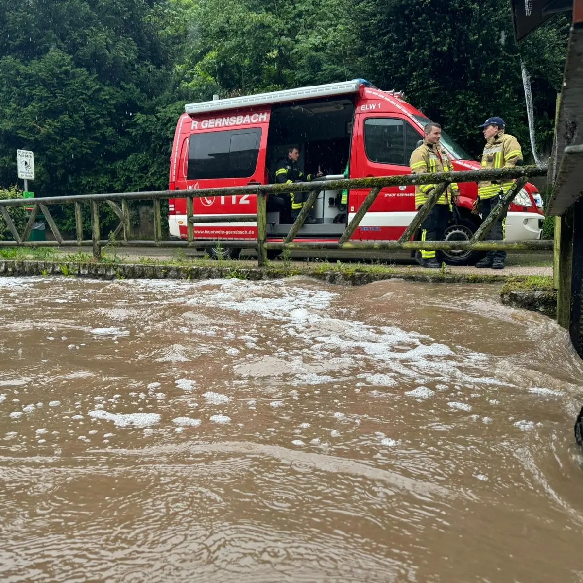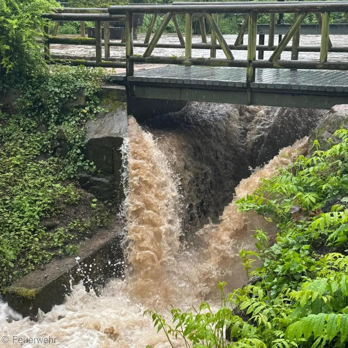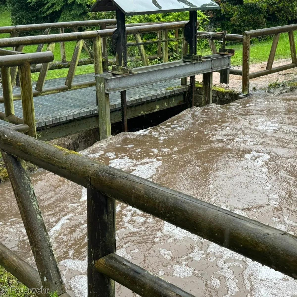Ein weiterer Einsatz aufgrund der Wetterlage ereignete sich heute Vormittag im Gernsbacher Kurpark. Hier hat es aufgrund der hohen Regenmengen einen rasanten Anstieg des Kurparksees und Igelbach gegeben. Eine Überflutung der angrenzenden Wege und Straßen drohte. Durch den ebenfalls verständigten Bauhof wurde ein Stauwehr geöffnet und parallel durch uns an verschiedenen Stellen Sandsäcke ausgelegt. So konnten wir ein Überlaufen noch rechtzeitig verhindern. Wir waren mit mehreren Fahrzeugen rund 3 Stunden vor Ort.