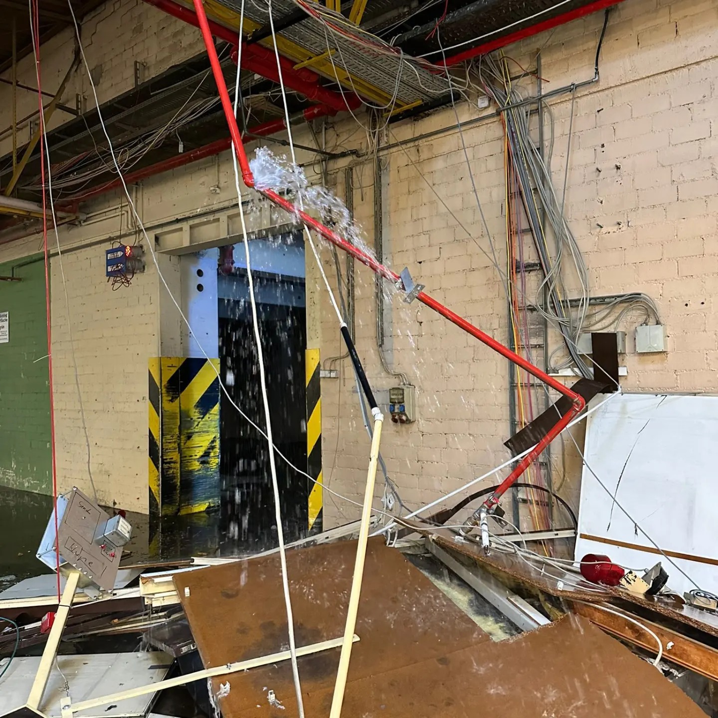 Ein gemeldeter Wasserschaden ereignete sich in einem Obertsroter Industrieobjekt. Vor Ort fand man eine abgerissene Sprinklerleitung verursacht durch Abrissarbeiten vor, aus welcher starker Wasseraustritt feststellbar war. Die entsprechende Sprinklergruppe wurde abgeschiebert, sodass kein Wasser mehr nachlaufen konnte. Durch die Verursacher Firma wurde das Wasser welches den Hallenboden flutete selbständig entfernt.