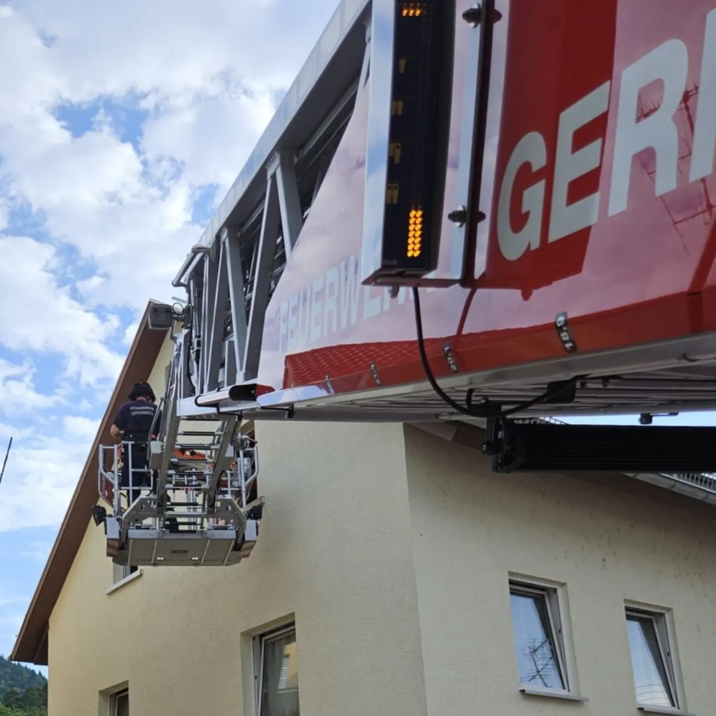 Zur Unterstützung des @rettungsdienst_mittelbaden wurden wir mit der Drehleiter nach Loffenau alarmiert. Gemeinsam mit der Feuerwehr Loffenau konnten wir eine Person vom Obergeschoss zum bereitstehenden RTW auf Straßenniveau transportieren.