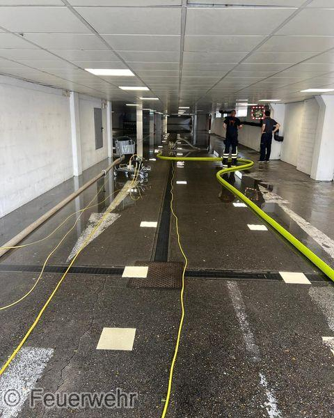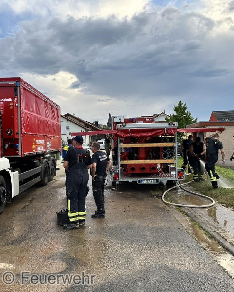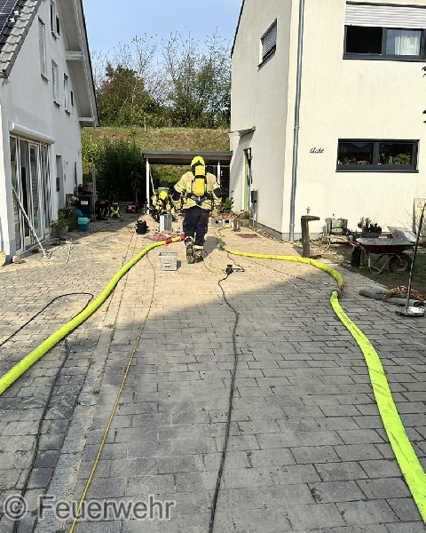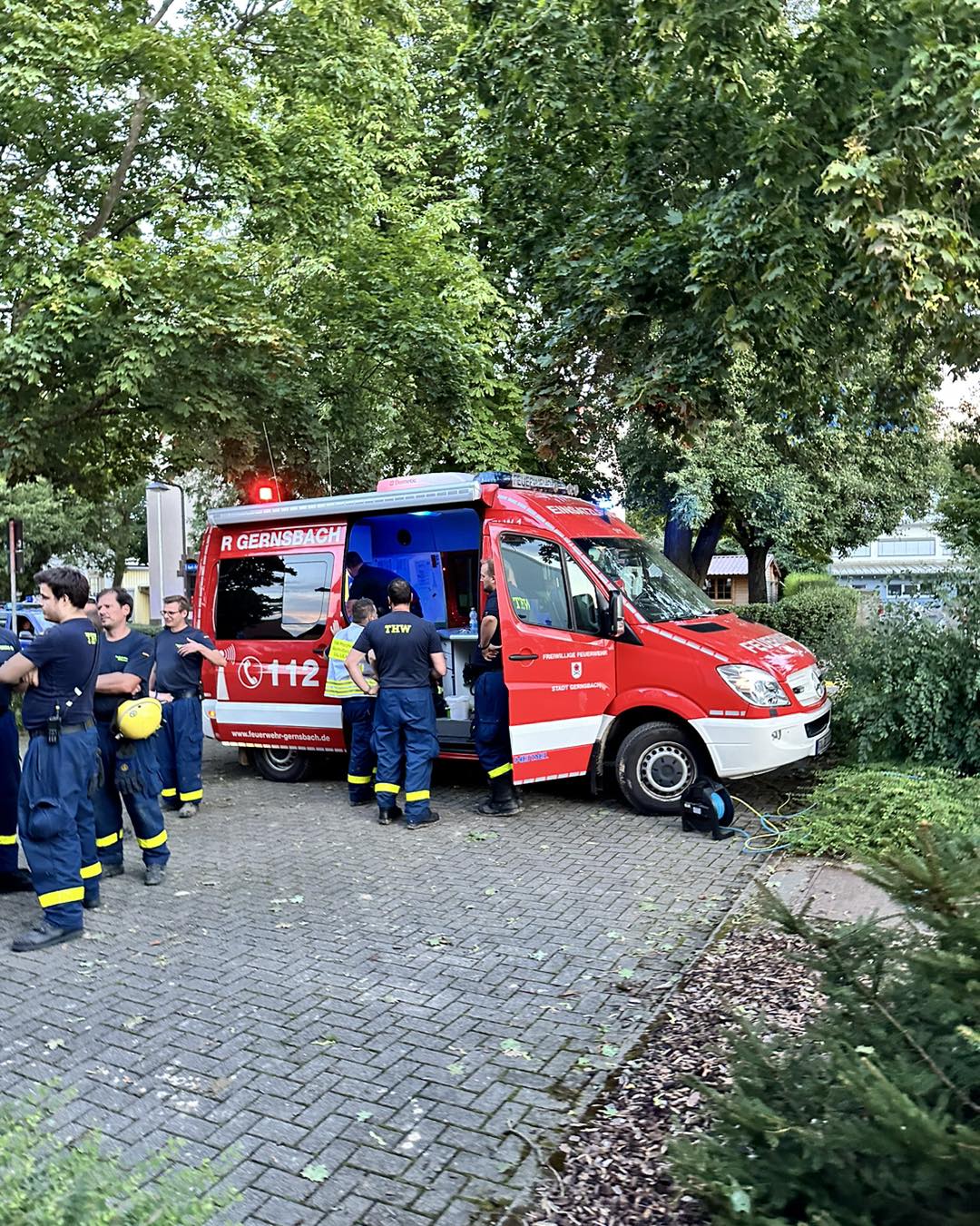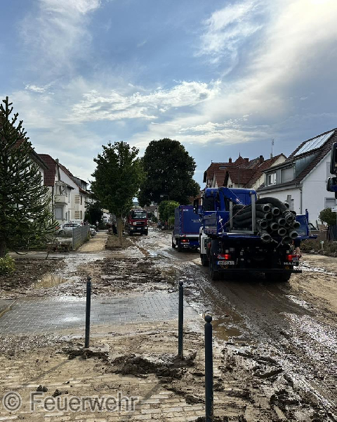 Am Morgen wurde der Hochwasserzug des Landkreises Rastatt aufgrund eines Starkregenereignisses nach Bruchsal alarmiert. Aus Gernsbach stellen wir einen ELW, einen GW-T sowie Zugführer. Insgesamt umfasste der Zug sechs Fahrzeuge und 35 Einsatzkräfte. Wir starteten gemeinsam von Rastatt als Verband nach Bruchsal. Dort angekommen erhielten wir unseren ersten Einsatzauftrag: mehrere Einsatzstellen in verschiedenen Straßen mussten angefahren, kontrolliert und ggf. Maßnahmen ergriffen werden. In der Innenstadt von Bruchsal pumpten wir einen Keller sowie eine über 5.000qm große Tiefgarage eines Einkaufsmarktes leer. Nach einer kurzen Stärkung im Feuerwehrhaus wurden wir zur Unterstützung des Hochwasserzuges aus dem Rhein-Neckar-Kreis in den Ortsteil Helmsheim geschickt. Dort waren ganze Straßenzüge mit Schlamm überzogen. Keller waren teilweise bis zur Decke mit Wasser gefüllt. Nach einer Erkundung der Lage und dem Festlegen der Prioritäten arbeiteten wir uns Haus für Haus, Straßenzug für Straßenzug durch. Wir pumpten mehrere Keller aus und unterstützten anwesende Bewohnerinnen und Bewohner sowie Helfer. Auch wurden zwei große Überflutungsflächen leer gepumpt, damit diese bei einem erneut auftretenden Starkregen wieder als Puffer für die anströmenden Wassermassen zur Verfügung stehen konnten. Am späten Nachmittag erhielten wir weitere Unterstützung durch Einheiten des THW. Während des Auspumpens von Kellern, kam es zu einem Brandeinsatz in einem Keller der betroffenen Häuser. Vermutlich aufgrund der Überflutung gab es einen Kurzschluss an einem Wechselrichter und einem Akku einer PV-Anlage. Wir stellten einen Atemschutzgerätetrupp und arbeiteten den Einsatz zusammen mit den Kollegen der Feuerwehr Altlußheim (RNK) routiniert ab. Obwohl wir mit den Kollegen aus Altlußheim noch nie gemeinsam im Einsatz waren, funktionierte die Zusammenarbeit hervorragend.