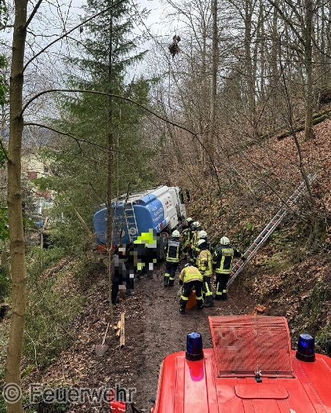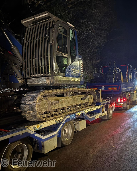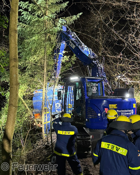 Am vergangenen Montag wurde die Abteilung Gernsbach mit ihren beiden Fahrzeugen, die eine Seilwinde verbaut haben, TLF 8/18 (Unimog) und HLF 20 in den Wandweg nach Obertsort alarmiert. Dort rutschte ein mit Heizöl beladener LKW vom Weg ab. Kurz vor dem Eintreffen an der Einsatzstelle wurde eine Einsatzrücknahme für uns ausgelöst, da die Bergung des LKW selbst durchgeführt wird. Um 12:45 Uhr wurde die Abteilung Gernsbach erneut in den Wandweg alarmiert. Da der Bergeversuch nicht funktionierte, galt es nun den LKW gegen ein weiteres abrutschten zu sichern. Mittels Mehrzweckzug wurde der LKW durch die Feuerwehr gesichert. Die weitere Bergung wurde durch die Firma selbst veranlasst. Die Sicherung mittels Mehrzweckzug wurde aufrechterhalten und für die Feuerwehr war Einsatzende. Als um 17.11 Uhr der Mehrzweckzug zurückgeholt werden sollte, wollte das Bergeunternehmen gerade in den Wandweg einfahren. Aufgrund der engen Straßenverhältnisse konnte das Bergeunternhemen nicht an die Einsatzstelle fahren. Durch den Einsatzleiter der Feuerwehr wurde der Fachberater THW nachgefordert. Gemeinsam schaute man sich die Stelle des LKW an und entschied, die Bergung durch das THW durchzuführen. Durch das @thwrastatt mit ihrer Bergungsgruppe sowie dem Kettenbagger des @thwpforzheim gelang es mit zwei Mehrzweckzügen und dem Kettenbagger den LKW wieder auf den befestigten Weg zu ziehen. Um sicher arbeiten zu können, musste die Einsatzstelle und der Weg auf einer Länge von ca. 300 Metern ausgeleuchtet werden. Die Feuerwehr Gernsbach unterstützte das THW mit dem KDOW 2 beim Transport von Einsatzequipment.