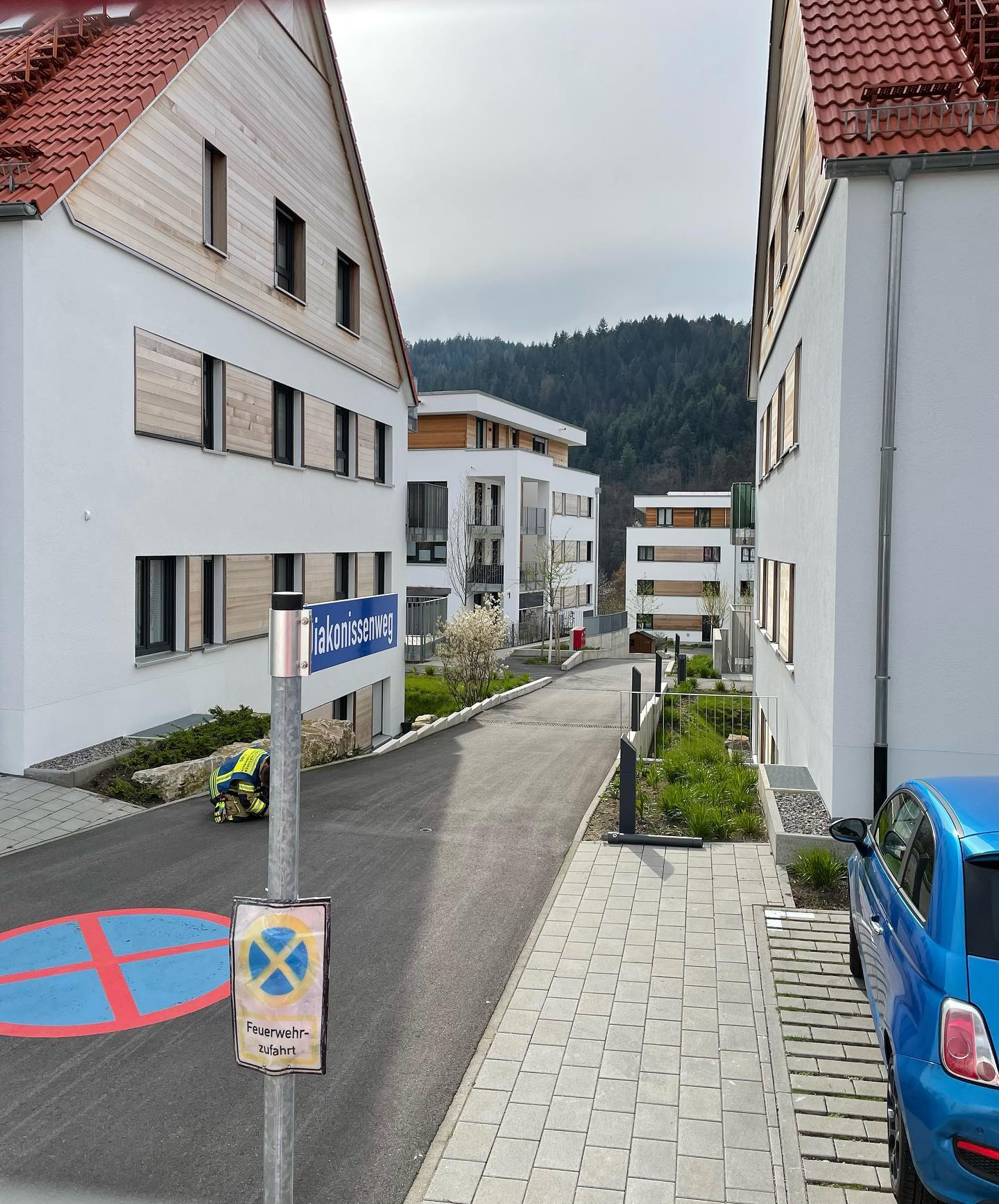 In diesem Zug haben sich die alarmierten Kräfte ein Bild über die Gegebenheiten (Fluchtwege, Anfahrtsweg, Wasserversorgung,…) des recht neuen Wohnkomplexes geschaffen.