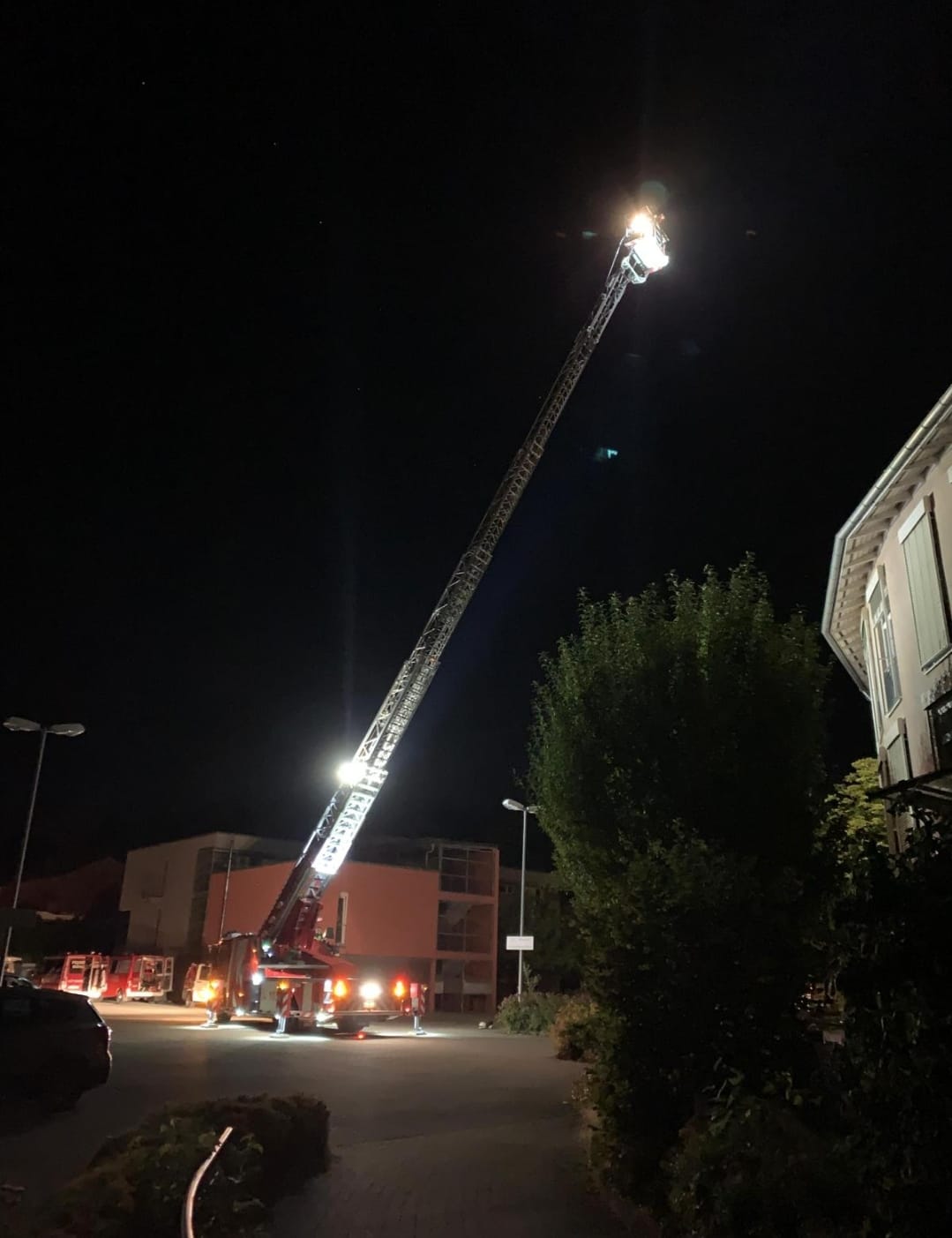 Die Leitstelle Mittelbaden alarmierte uns gestern Abend in die Casimir- Katz-Straße zum dortigen Rehazentrum. Eine Person soll sich auf dem Dach befinden. Wir kontrollierten das Gebäude mit mehreren Trupps von innen und von außen über die Drehleiter, mit der wir parallel auch großflächig die Einsatzstelle ausleuchteten. Letztendlich konnte keine Person aufgefunden werden, die auf dem Dach war oder sich in Gefahr befand. Nach rund 1,5 Stunden konnte der Einsatz nach Rücksprache mit der Polizei abgebrochen werden.
