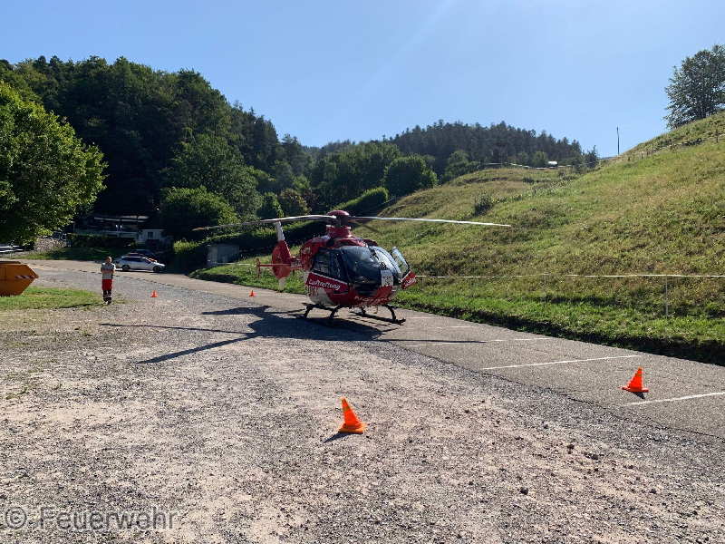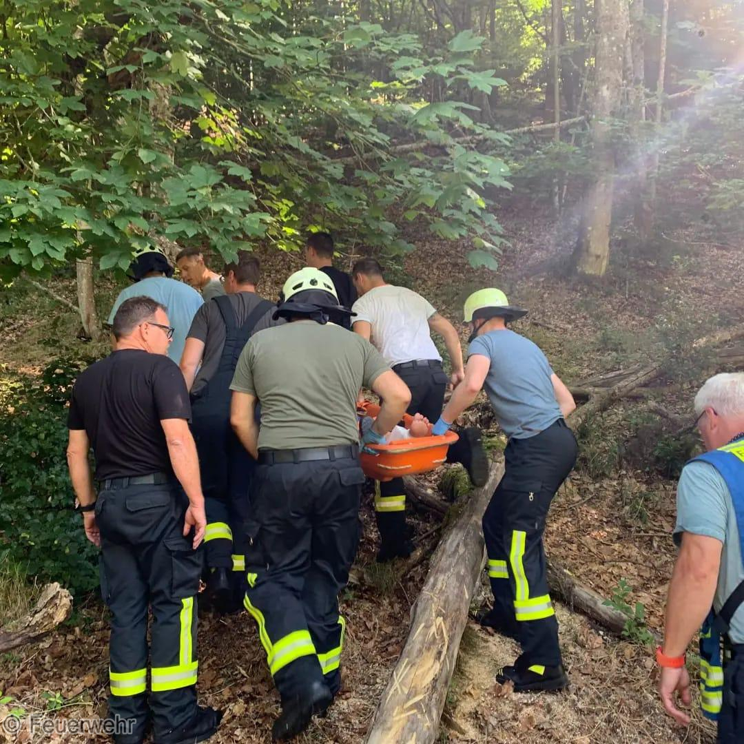 Heute morgen wurden wir zu einer Personenrettung in den Stadtteil Reichental alarmiert. Eine Person war in schwierigem Gelände gestürzt und hatte sich eine Unterschenkelfraktur zugezogen. Die verletzte Person lag rund 200m abseits der befestigten Straße wo der Rettungswagen bereitstand. Die Rettung wurde über die Schleifkorbtrage eingeleitet und die verletzte Person von der Unglücksstelle mit vereinten Kräften auf einen Waldweg getragen, wo sie von dort mit dem KDOW sitzend zum RTW gebracht werden konnte.