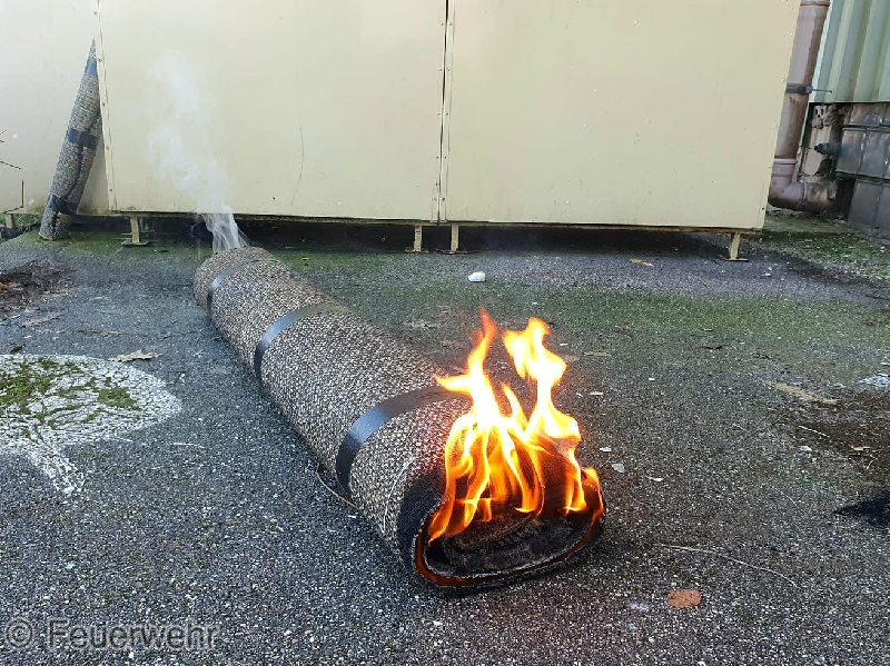 Heute wurden wir zu einem brennenden Teppich alarmiert. Der Teppich lag beim Eintreffen hinter einem Altkleidercontainer und wurde von uns gelöscht.