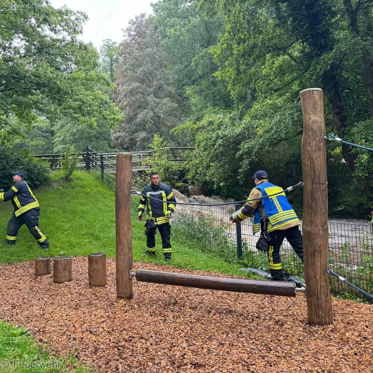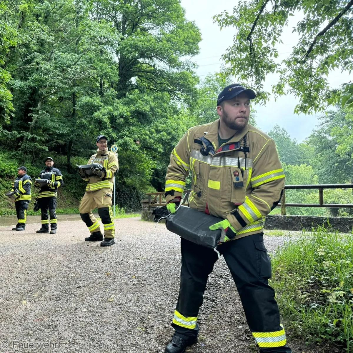 Ein weiterer Einsatz aufgrund der Wetterlage ereignete sich heute Vormittag im Gernsbacher Kurpark. Hier hat es aufgrund der hohen Regenmengen einen rasanten Anstieg des Kurparksees und Igelbach gegeben. Eine Überflutung der angrenzenden Wege und Straßen drohte. Durch den ebenfalls verständigten Bauhof wurde ein Stauwehr geöffnet und parallel durch uns an verschiedenen Stellen Sandsäcke ausgelegt. So konnten wir ein Überlaufen noch rechtzeitig verhindern. Wir waren mit mehreren Fahrzeugen rund 3 Stunden vor Ort.