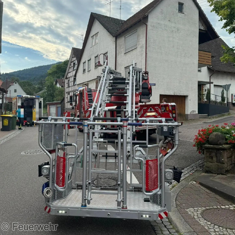 Zur Unterstützung des @rettungsdienst_mittelbaden wurden wir mit der Drehleiter nach Loffenau alarmiert. Gemeinsam mit der Feuerwehr Loffenau konnten wir eine Person vom Obergeschoss zum bereitstehenden RTW auf Straßenniveau transportieren.