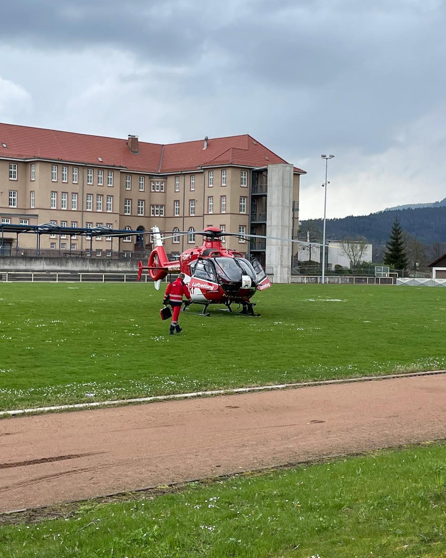 Das Personal eines Rettungshubschraubers wurde mit einem Fahrzeug der Feuerwehr zur Einsatzstelle gefahren.